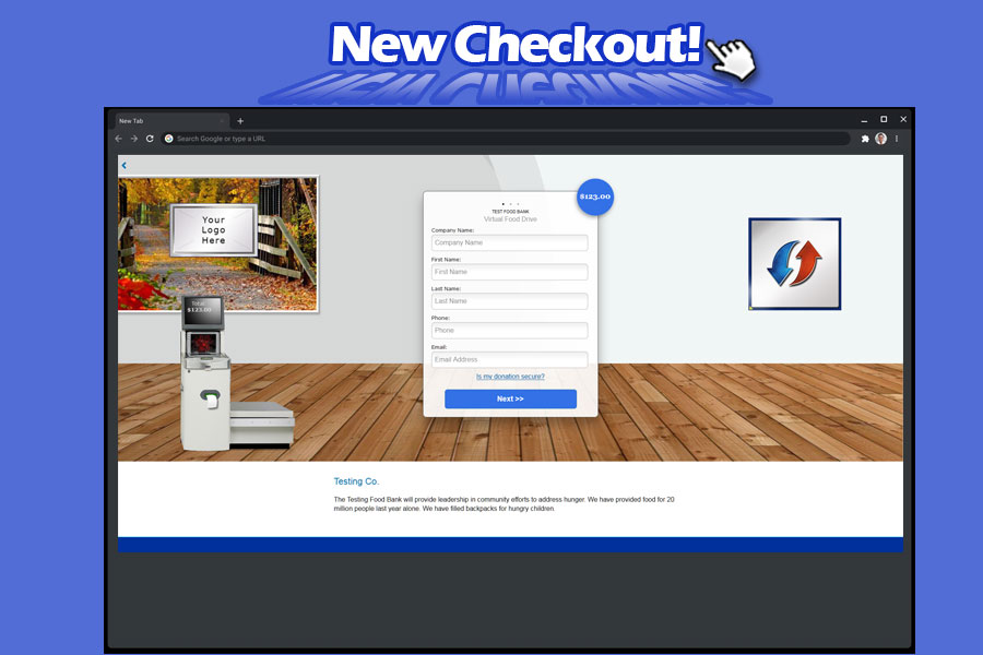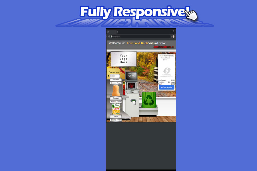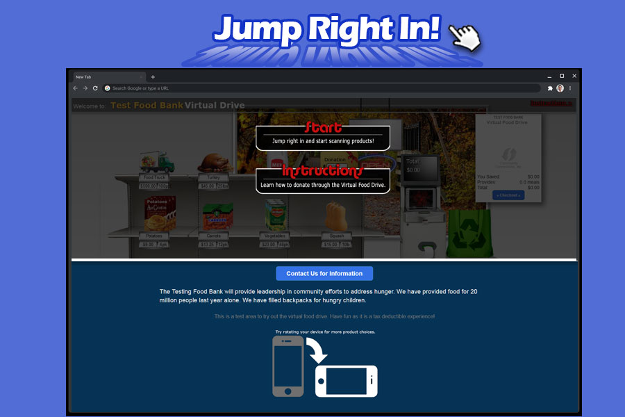 This Virtual Food Drive system is supported on all devices from iPads, iPhones, Android devices all the way to laptops and desktop PCs. Designed to look like a grocery store, donors select "items" from the shelves as if they were buying food to donate. As they scan items, they see the multiplying factor of their dollars translated into meals for the hungry, as well as their savings from buying food themselves.
